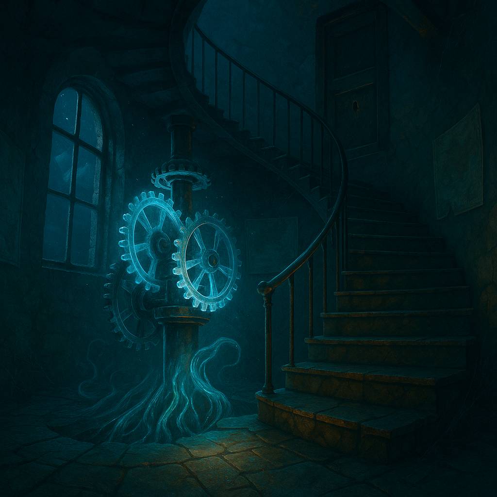 На четвёртом этаже стены были влажные, здесь пахло ржавчиной и ламповым маслом. С верхних этажей падали редкие капли, и каждый хлопок эхом рождал сразу три – будто капли падали не в одном мире.