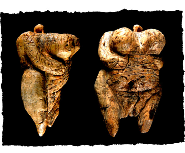 Холе-Фельс, Германия. Древнейшая из известных палеолитических венер. Сделана из бивня шерстистого мамонта. Отверстие в месте головы дает право сделать вывод, что статуэтка использовалась как кулон.