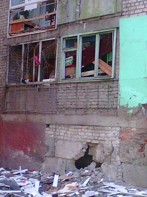 Если не надо идти по воду, то я провожу у неё часа полтора-два. Убираю, стираю. Разговариваем. Слушаем новости по приёмничку. Какое счастье, что он работает! Это маму только и спасает, когда она в темноте остается одна. Каждый час она включает его на десять-пятнадцать минут. Не больше – бережет батарейки. Пересказывает потом мне, что слышала. Новости не успокаивают. Мы в полной блокаде. Во всем городе нет ни света, ни воды, ни связи… Пенсии и зарплаты не выплачиваются. Город обстреливают со всех сторон. Особенно достается Камброду, Вергунке, району автовокзала и Юбилейному, где живет мама. А вообще разрушения по всему городу. Погибшие дети, женщины, старики… Знакомый, работающий на «скорой помощи» говорит, что на одного раненого ополченца приходится три (!!!) мирных жителя… Это война с террористами?!!