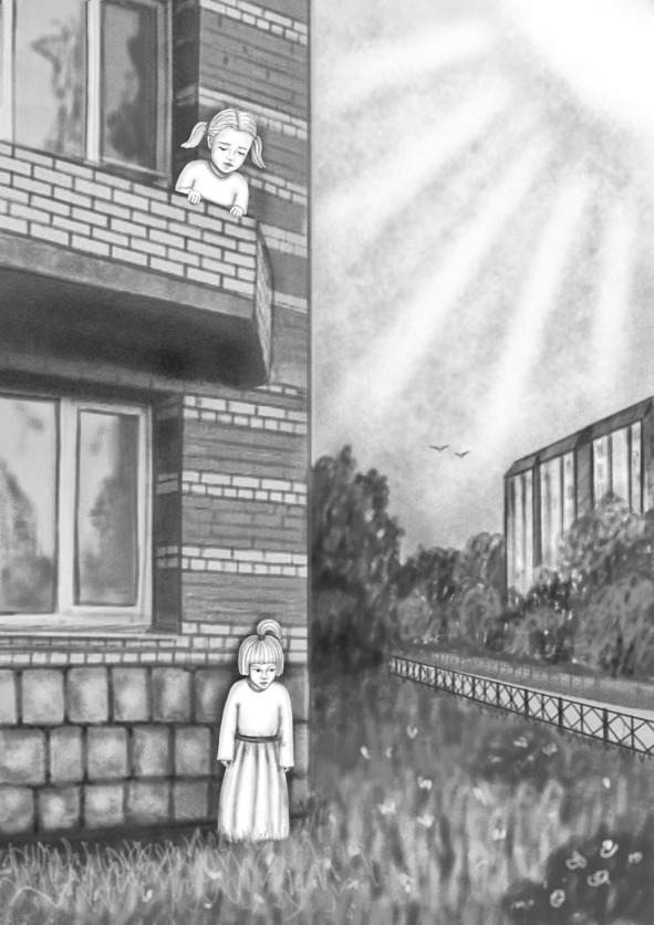 И вдруг увидела, что страшилка, похожая на неё, стоит одиноко на углу возле дома и казалось, что она сейчас заплачет.
