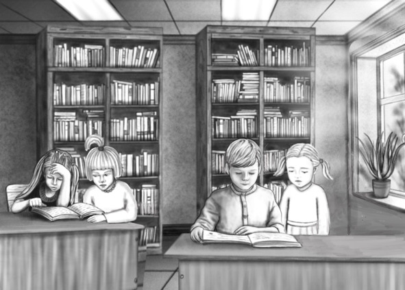 Они залетели в библиотеку, но там все сидели тихо, и ничего было не узнать, а читать они не умели.