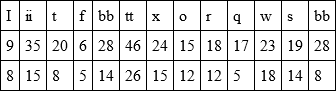 "Translated into what we call 'letter figures,'" he went on, "that would be 9 9 9 20 6 2 2 20 20 24 15 18 17 23 19 2 2 – the system where 'a' is denoted by 1, 'b' by 2, and so on. No, that's still meaningless. That repetition of the letter 'i' at the beginning of the message is what makes it particularly puzzling.
