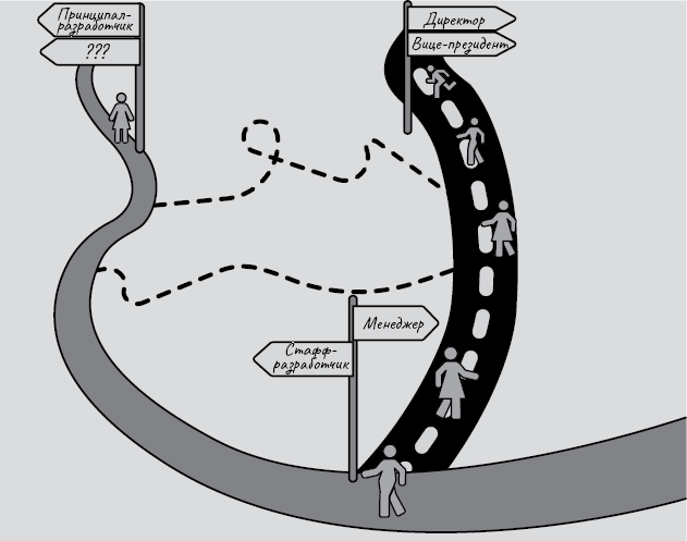 Хочу сказать, что частично я добилась успеха. Каждый раз, когда кто-то говорит мне, что он прочитал мою книгу и решил не становиться менеджером, я праздную свою маленькую победу. Ведь хотя бы некоторые люди, ознакомившись с моей книгой, осознали, что эта работа им не подходит. К несчастью, для альтернативного варианта карьерного роста индивидуального контрибьютора, пути стафф-разработчика, нет аналогичного пособия. Это привело к тому, что многие все равно идут в управленцы, даже если не хотят нести ответственность за все бо́льшие и большие группы людей: они просто не видят другой возможности развиваться. Это огромное разочарование как для разработчиков, так и для менеджеров: большинству менеджеров нужны сильные разработчики уровня стафф+, но они не знают, как повысить их статус в компании, а многие разработчики хотят продолжать заниматься программированием, но не видят реальных возможностей продвижения по служебной лестнице, кроме перехода в менеджмент.