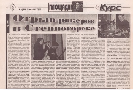 Долго ли, коротко ли, пригласили нашу группу на очередное интервью. Было оно, если мне не изменяет память непосредственно перед Новым годом, а вот увидело свет только 3 января 2008 года в газете «Степной маяк» в рубрике «Music land». Интервьюировала группу Рена Жуманова, назвав статью «Дети лунного света». Не так давно я нашла его на Проза.ру, что для меня было приятным удивлением Желающие могут его найти и прочитать и там, и тут и даже со скана газеты, который я тоже сюда приложу )))