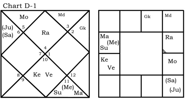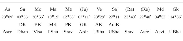 In this book, I will use Navamsa sparingly, doing so intentionally to highlight the importance of the division chart D-6, often overlooked in traditional analyses. Navamsa is a powerful predictive tool, where planetary positions, Yogas, nakshatras, and other key points are interpreted alongside the Rasi chart. For similar reasons, I will not focus on Chara Dasha analysis; instead, I will concentrate on Vimshottari Dasha. A deeper knowledge of this Dasha system will help you be confident in 90% of your judgments, with only a few birth charts requiring verification by other methods.