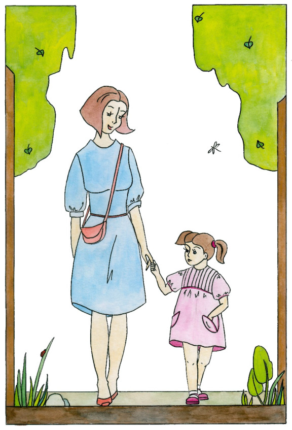 Mother and daughter were walking along a path to a clearing. In summer there were lots of beautiful flowers growing in that clearing. That day Vera decided to pick some flowers for a bouquet to decorate her room. Her mother was slowly telling Verochka a fairy tale about forest animals and the girl was listening attentively.