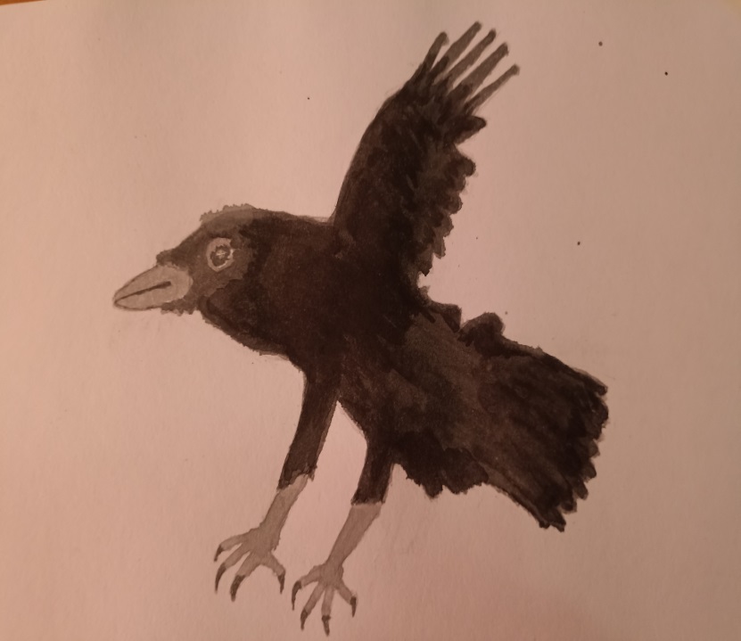 наступать на ворона. Тот тоже принял боевую стойку, но силы были не равны. На защиту птицы стал наш герой. Схватив валявшийся веник, он