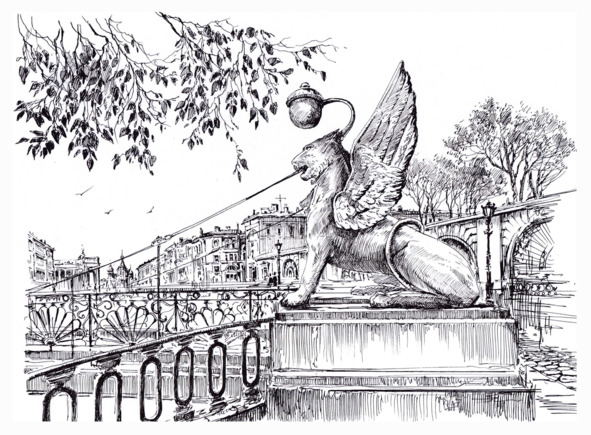 Мне дорог дом рядом с Банковским мостиком, который охраняют крылатые львы, – мы прожили в нём столько долгих лет!.. Дом 19-го века, архитектор Тибо-Бриньоль.