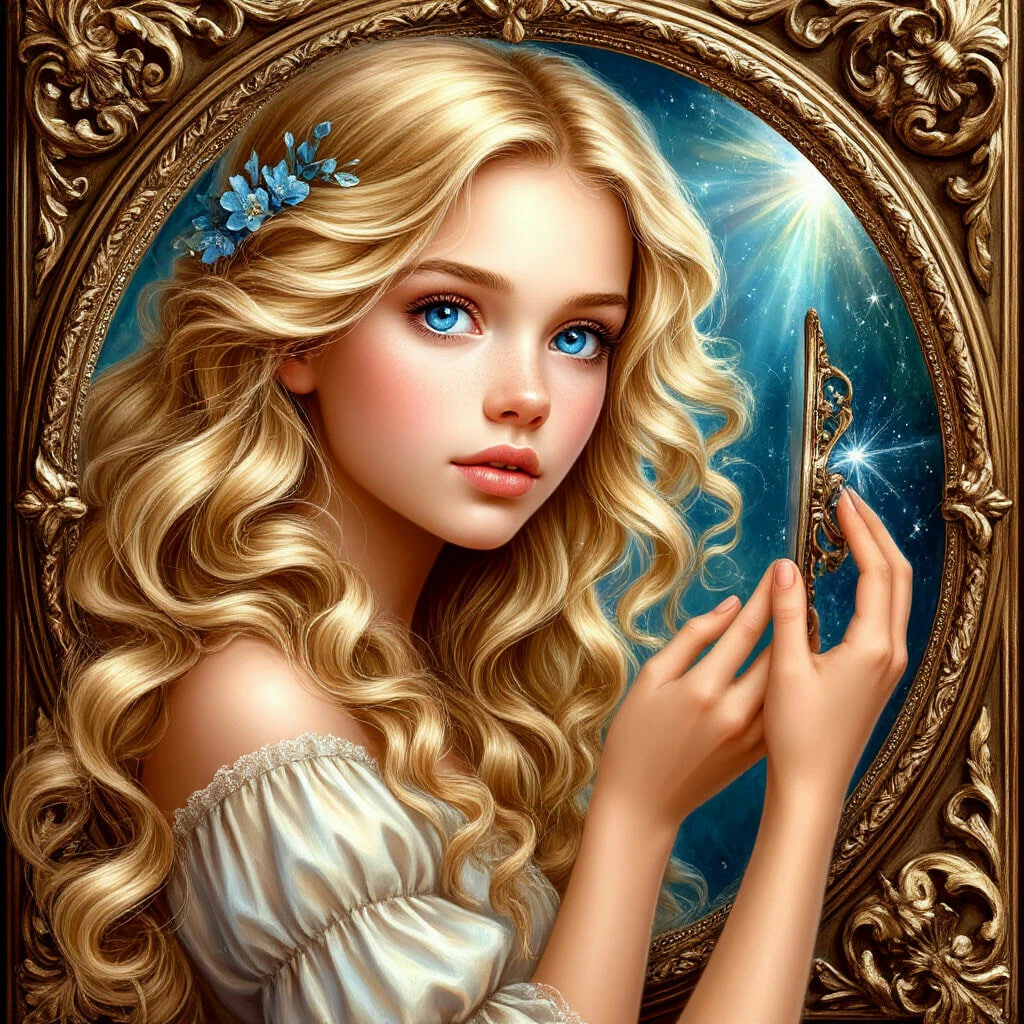 Как обычно села Аня напротив своего волшебного зеркала, смотрит внимательно, глядит и видит вдруг: изображение в нём меняется, лицо исчезло. Но появилось волшебное мерцание в глубине зеркала. Странное такое, почти живое… Точно звали её куда-то, манили загадочные огоньки таинственного света. Любопытство победило страх, протянула Аня руку осторожно, и коснулась поверхности стекла ладошкой. И тут произошло чудо невероятное: зазвенели хрустальные колокольчики внутри зеркала, оно распахнулось тихо-тихо, открыв тайный проход в другой мир…