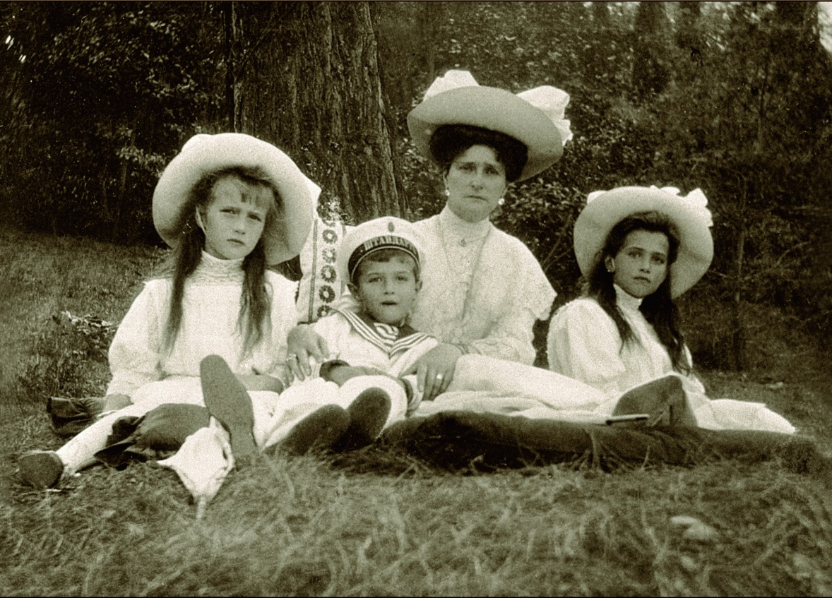 «Во время одной прогулки по берегу Днепра, при посещении Императорской Ставки Верховного Главнокомандующего, Цесаревич, будучи в шаловливом настроении, вытащил у меня зонтик и бросил его в реку. Великая Княжна Ольга и я старались зацепить его палками и ветками… Неожиданно появился Государь. “Что это за представление?” – спросил он, удивленный нашими упражнениями около воды. “Алексей бросил ее зонтик в реку, и это такой стыд, так как это ее самый лучший”, – ответила Великая Княжна, стараясь безнадежно зацепить ручку большой корявой веткой. Улыбка исчезла с лица Государя. Он повернулся к своему сыну: “Так в отношении дамы не поступают, – сказал он сухо. – Мне стыдно за тебя, Алексей. Я прошу извинения за него, – добавил он, обращаясь ко мне, – и я попробую исправить дело и спасти этот злополучный зонтик”. К моему величайшему смущению, Император вошел в воду. Когда он дошел до зонтика, вода была выше колен… Он передал его мне с улыбкой. “Мне все же не пришлось плыть за ним! Теперь я сяду и буду сушиться на солнце”. Бедный маленький Царевич, красный от отцовского резкого замечания, расстроенный подошел ко мне. Он извинился, как взрослый. Вероятно, Государь позже поговорил с ним, так как после этого случая он перенял манеру отца, подчас забавляя нас неожиданными старомодными знаками внимания по отношению к женщинам. Это было очаровательно». (Из воспоминаний баронессы С.К. Буксгевден «Император Николай II, каким я его знала»)