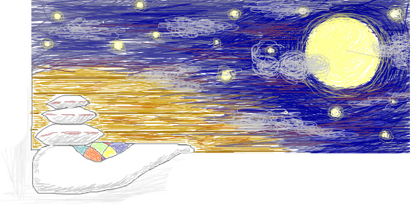 Как звезды на скалы садятся,Как с ними танцует луна.Как в воду все вместе глядятся,И только Земля тут одна.Хоть солнце ее отвлекает,И песню о лете споет.Вот только, оно-то не знает,Чего же соседка все ждет.По синему небу мечтаний,Блуждает совсем не спеша.И в сумку из звезд и желаний,Ссыпает алмазы душа.