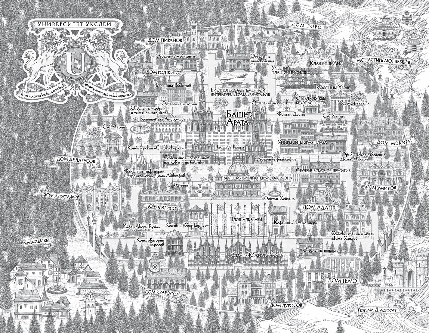 © 2024 by Virginia Allyn, карта, герб университета, заставки глав.