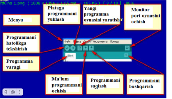 2.7-rasm. Arduino IDE menyusidagi uchta asosiy buyruq