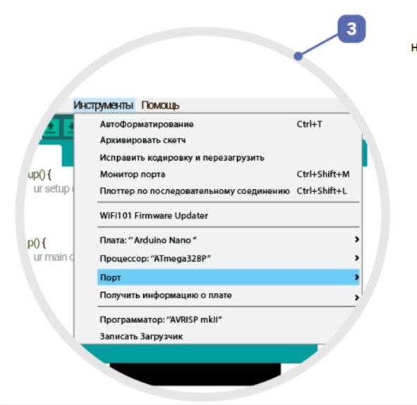 «Инструменты» ga kirilib, kursor orqali «Пort"ga kiriladi va kerakli port (2.5-rasm) tanlanadi.