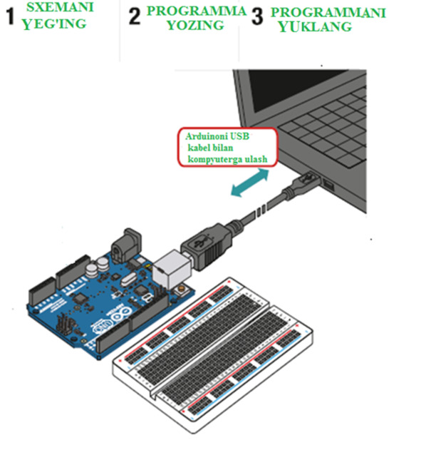 UNO Arduino platsini USB kabel orqali kompyuterga ulang.