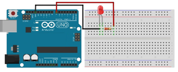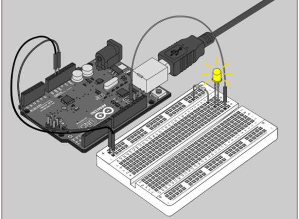 Arduinoga programma kodni yuklaganimizdan so‘ng yorug‘lik diodini miltilashini ko‘ramiz. Agar qurilma ishlamasa sxema va programma to‘g‘ri yuklanganligini tekshiring va xatolikni toping va yana bir ishlatib ko‘ring.