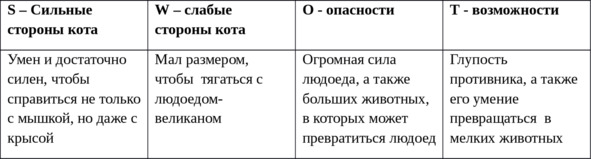 Рис. 3. SWOT-анализ, выполненный котом в сапогах.