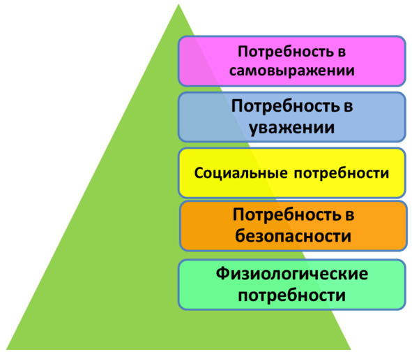 Абрахам Маслоу, один из наиболее почитаемых психологов в теории менеджмента, выделял следующие потребности: физиологические, в безопасности, социальные (в общении и др.), в уважении и самовыражении. Конечно, этот список человеческих потребностей не полон.