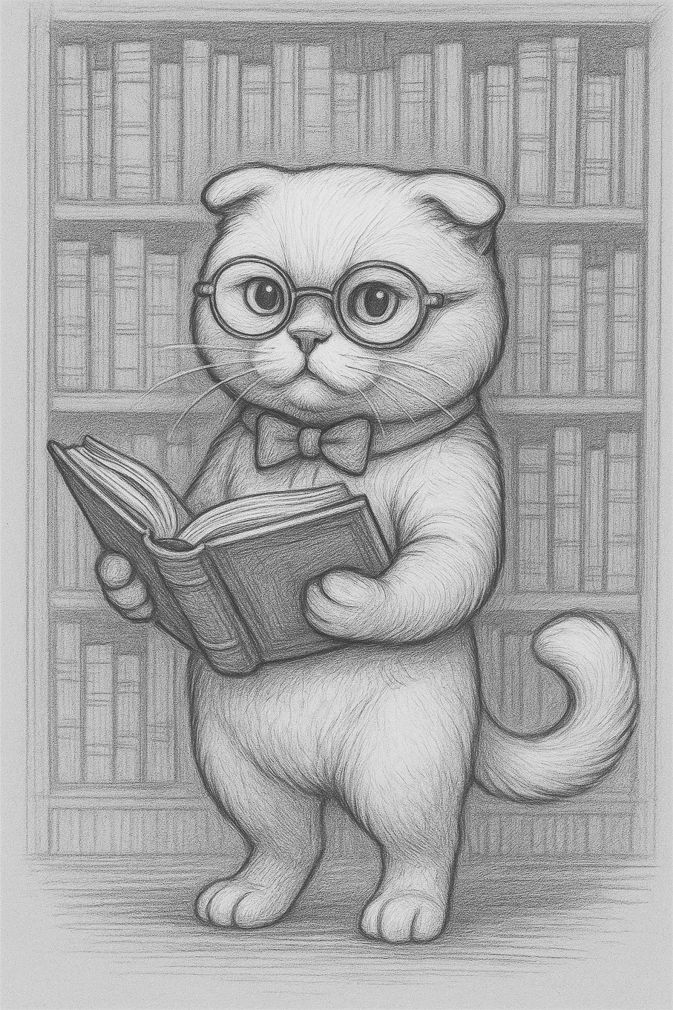 – Да-да, уже бегу, – раздался тихий голосок и послышались легкие шаги, – здравствуйте, чем могу помочь? – из-за стеллажа вынырнул белый кот в очках и галстуке-бабочке.