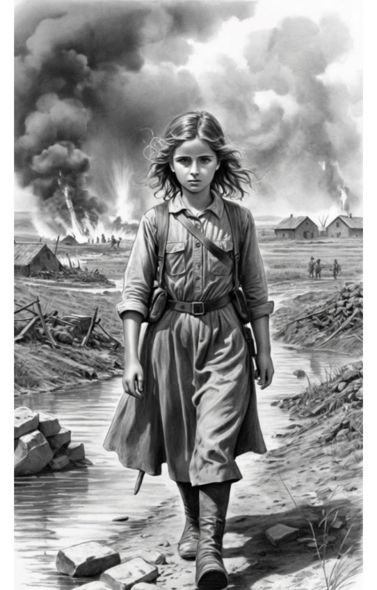 Были взрывы, гремела война,Кровью людской земля залита.В поле девочка одна,Отца искала не прося защиты.Одна из всей семьи осталась,Сожгли фашисты всё село.Ползком по полю пробиралась,Чтоб не заметили ее.Она не плакала, не выла,А, ей всего двенадцать лет.Она к отцу скорей спешила,Предупредить, что моста нет.Ведь там за полем, с отцом вместе,Танковая рота молодых ребят,Прорывались с окруженья немцев,Не зная, что их опередят.Смогла девчонка, добралась,Спасла полсотни жизней.Совсем недавно родилась,Уже герой отчизны.