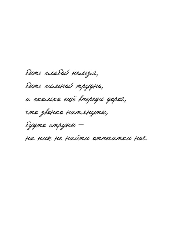 Я этой зимой на пределе, морозных ночей не хочу, устала от белых метелиц и в вихре безумно кричу. Никто не услышит – я знаю, никто не простит, не поймёт… и даже в белеющем мае прохожий не глядя пройдёт. Винить я других не привыкла — могла бы… но нет, не хочу. Однажды проснувшись от крика, теперь я молчу. Молчу.