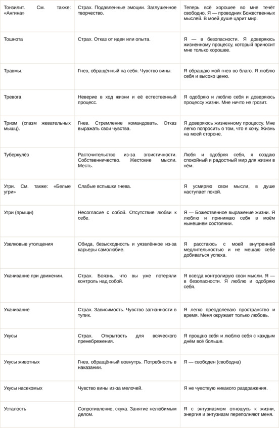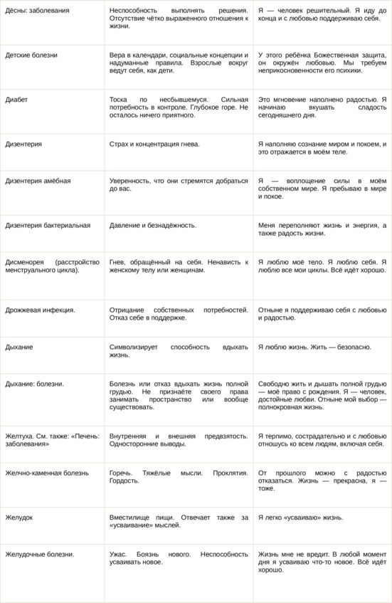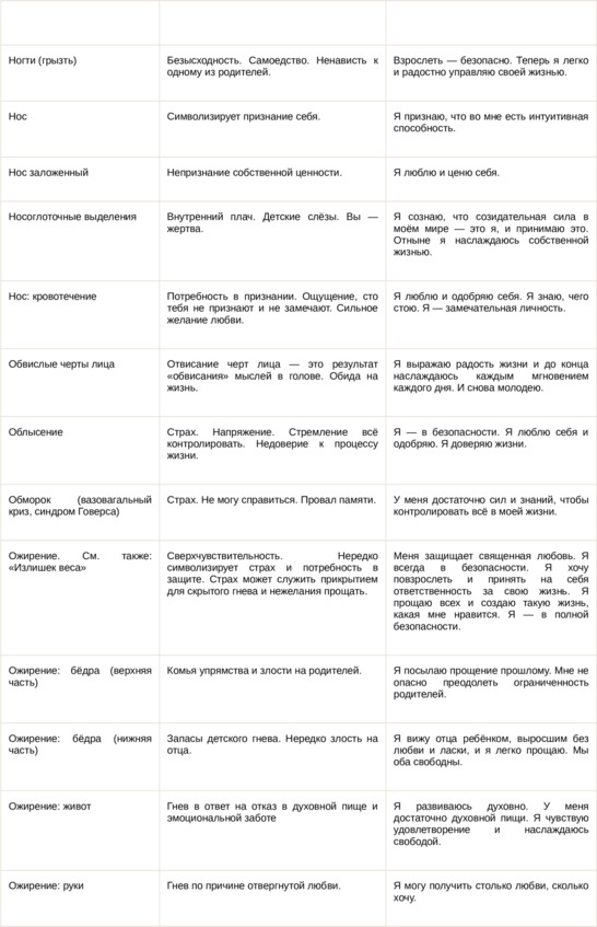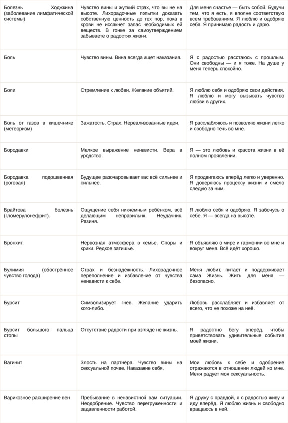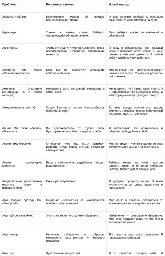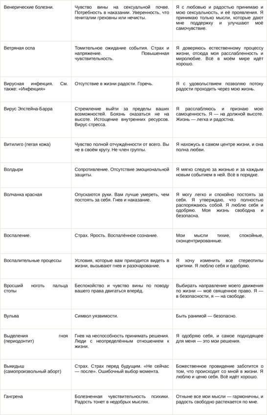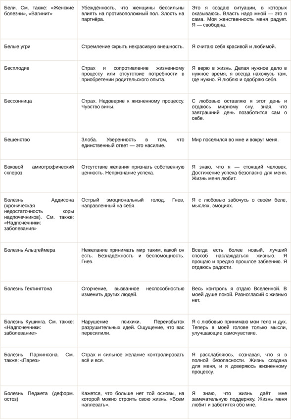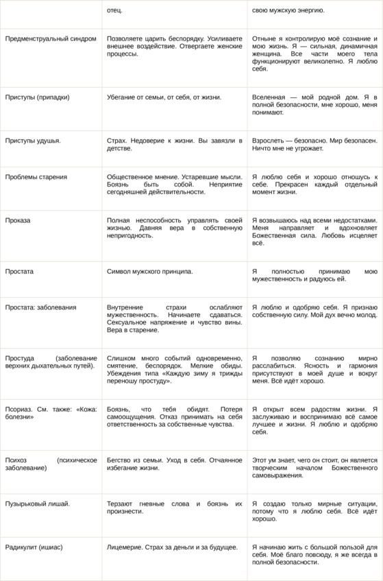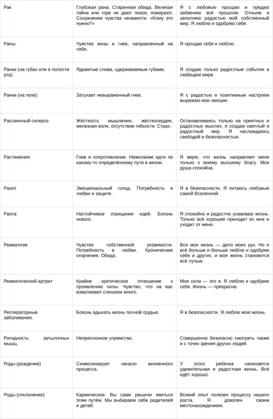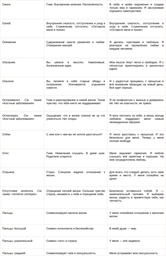 Физические болезни и их соответствующие первопричины на психологическом уровне