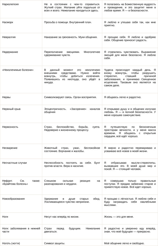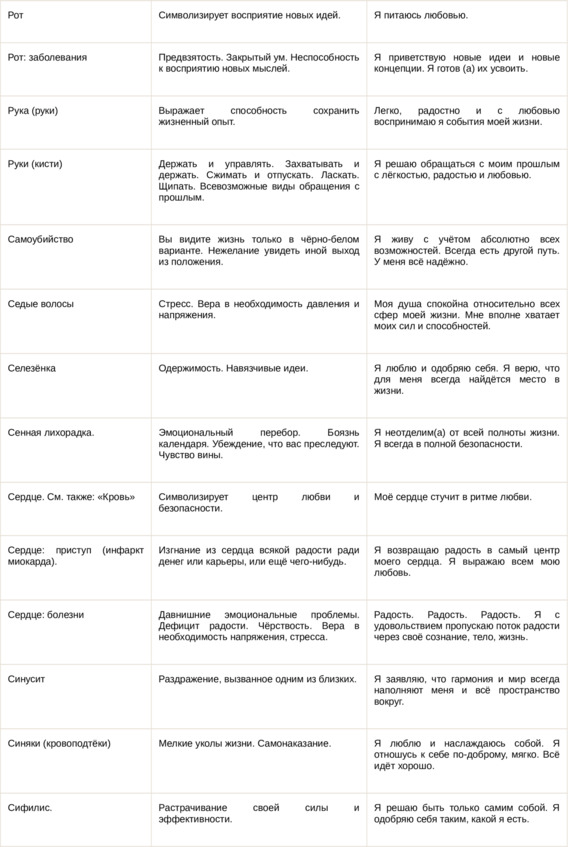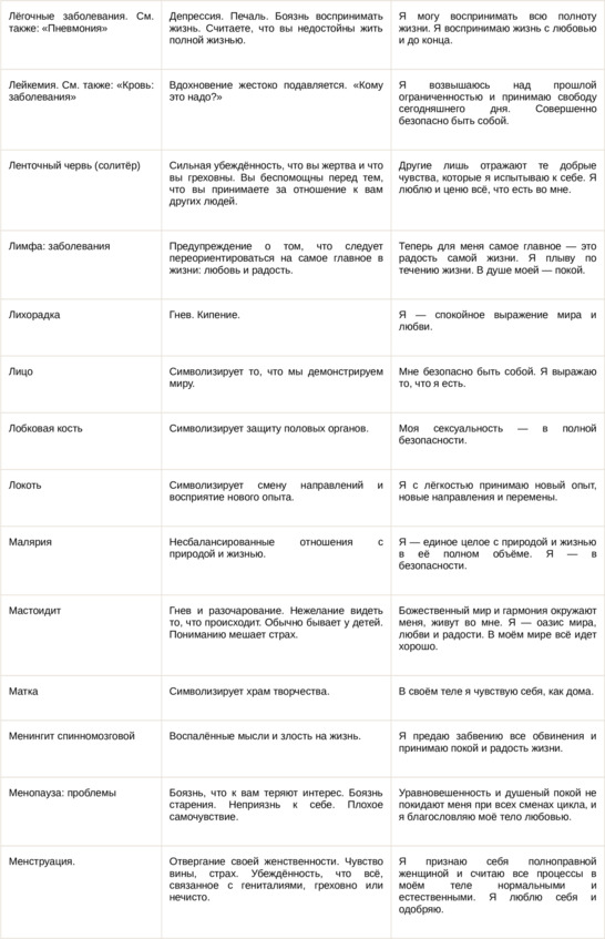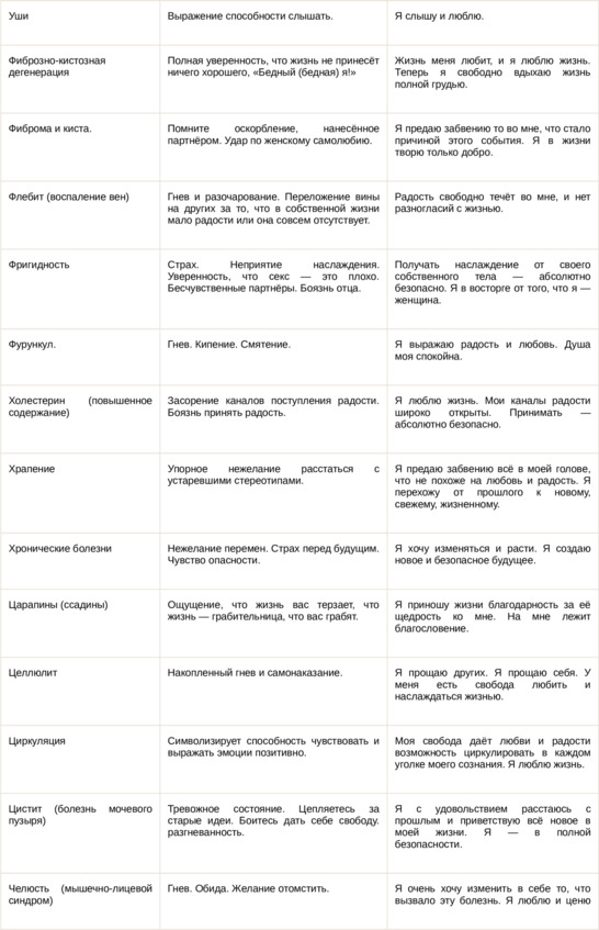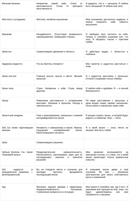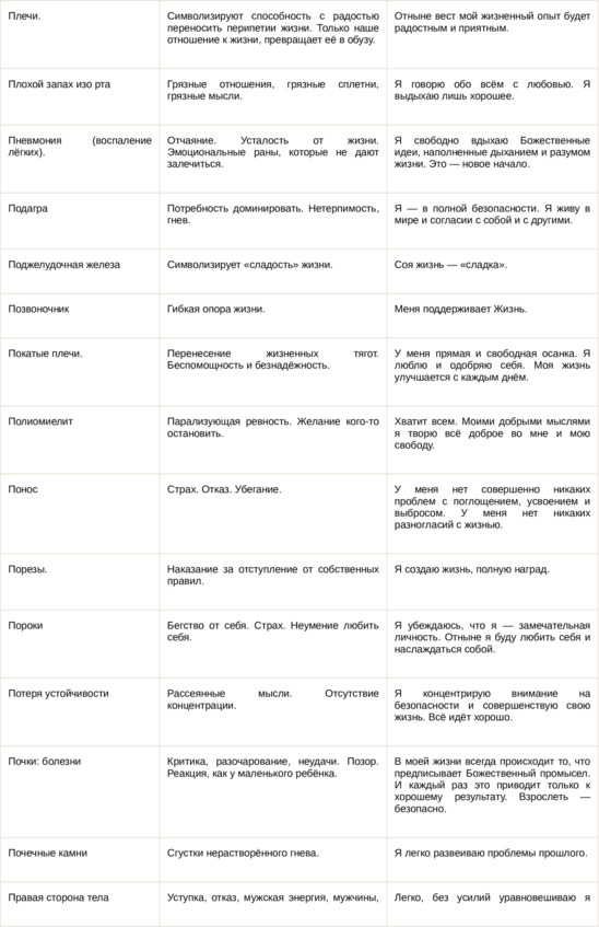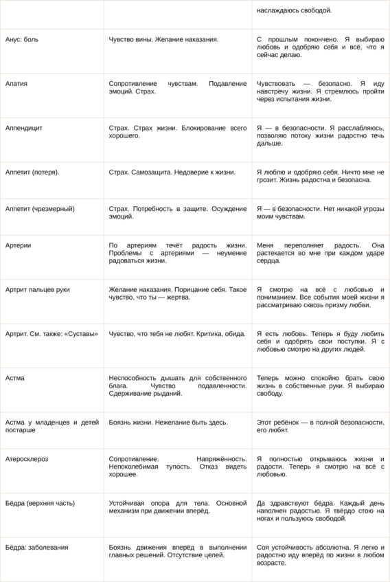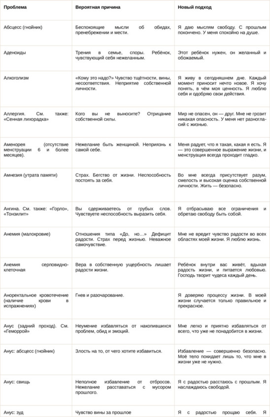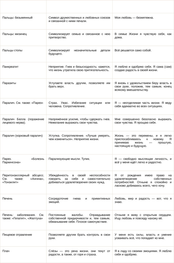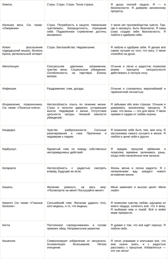 Физические болезни и их соответствующие первопричины на психологическом уровне