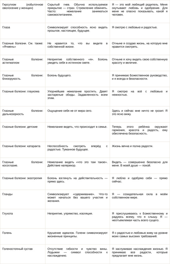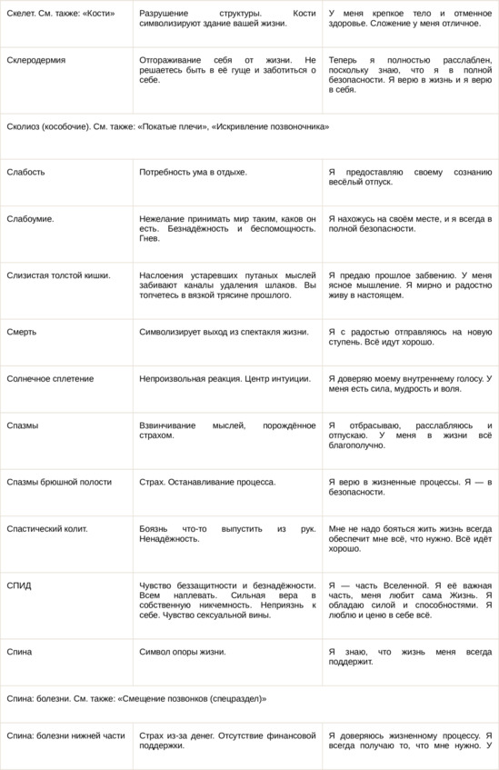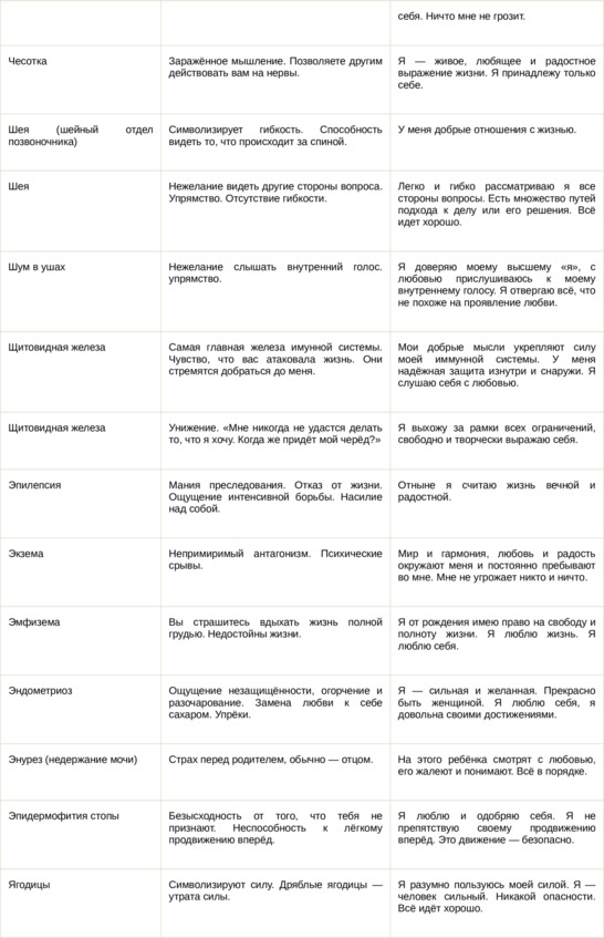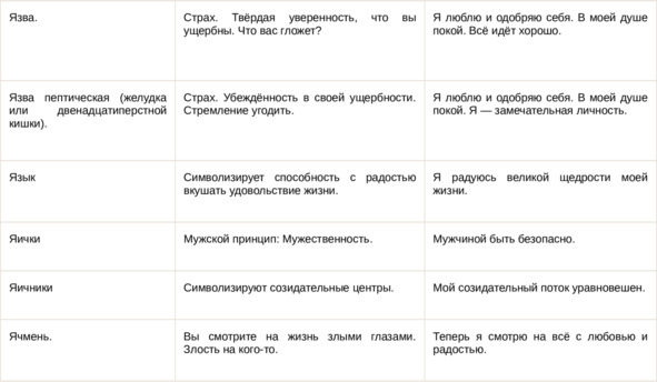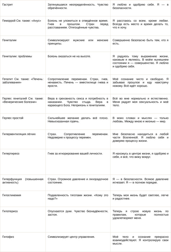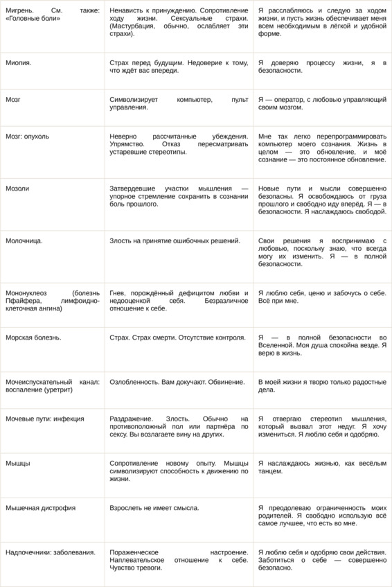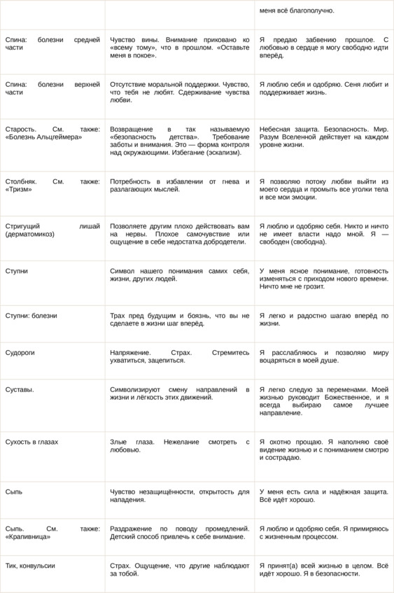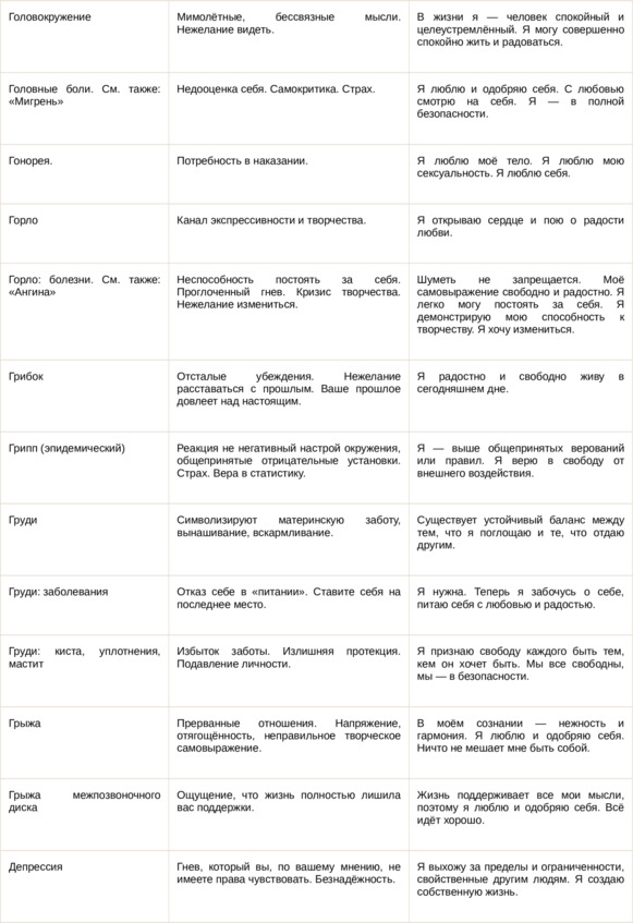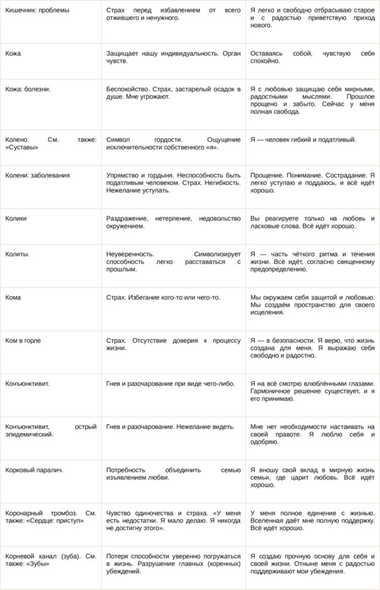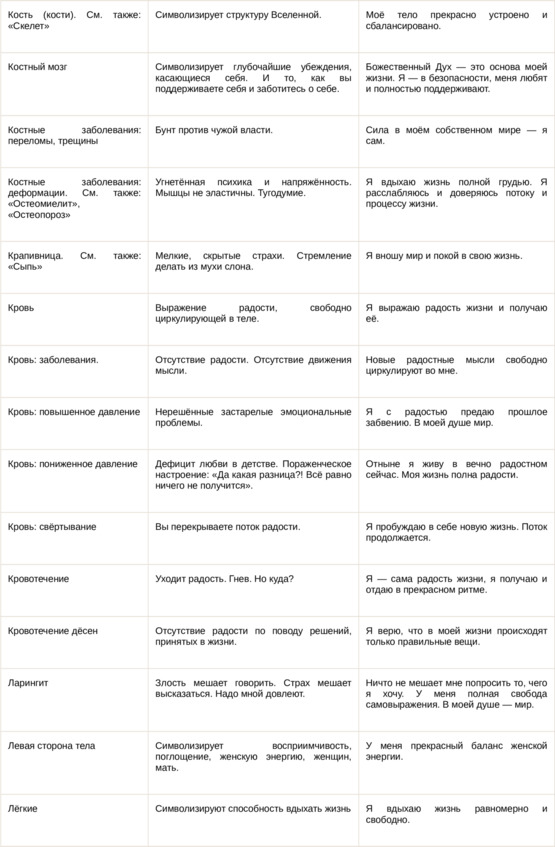 Физические болезни и их соответствующие первопричины на психологическом уровне