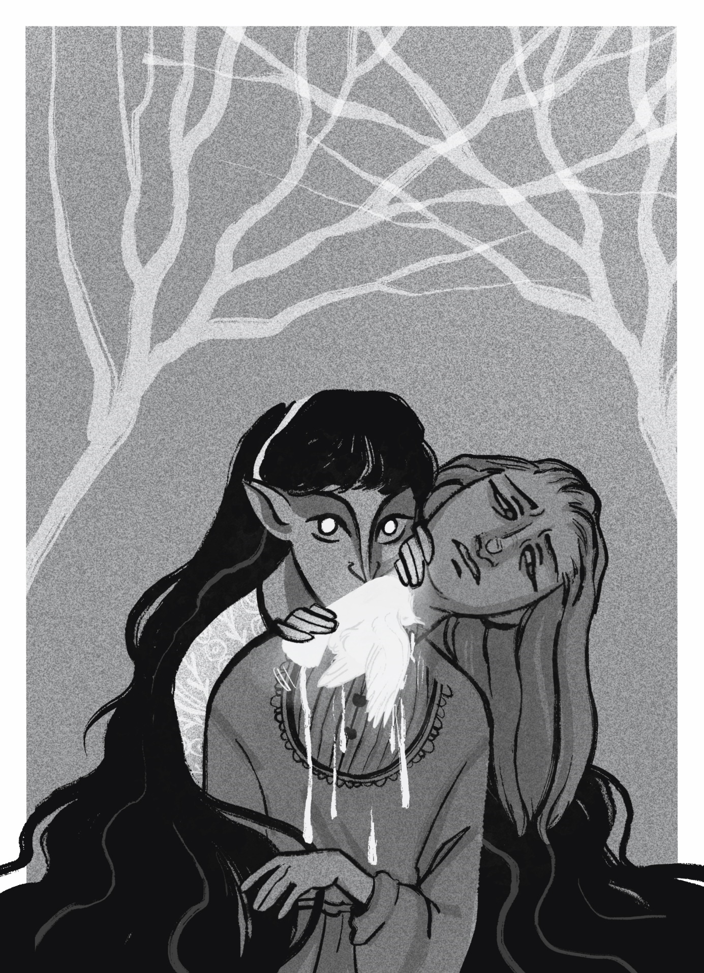 – Когда я вошла, ты разговаривала с кустом. Ты любишь растения? Знаешь ли, у меня чудесный сад, правда, совсем зарос! Ты можешь навести в нём порядок, можешь же? Конечно, он весь твой! Доверяюсь твоему вкусу и чувству цветочного мира! Что в этом мешке? Обед! Да не жалей его, он пойдёт на праведное дело, моя дорогая. Ты умеешь убираться? Это хорошо, будешь мне помогать по дому, ведь будешь же? О, ты очень добра! Ни я, ни Шварцзиле в этих вещах ни черта не смыслим, а тебе я доверяю. А читать умеешь? Нет? Ну, это ничего, мы тебя ещё научим! Очень хороший навык и полезный! Будешь моей компаньонкой. Я разрешу тебе примерять мои платья и играть с моими куклами. Ты же не уронишь, ты же аккуратная? Нет? Ну, тогда, извини, не разрешу! Мне очень дорога моя коллекция. О Тэрке! Что это за дрянь? Терпеть не могу этих птиц, не понимаю моду на них!