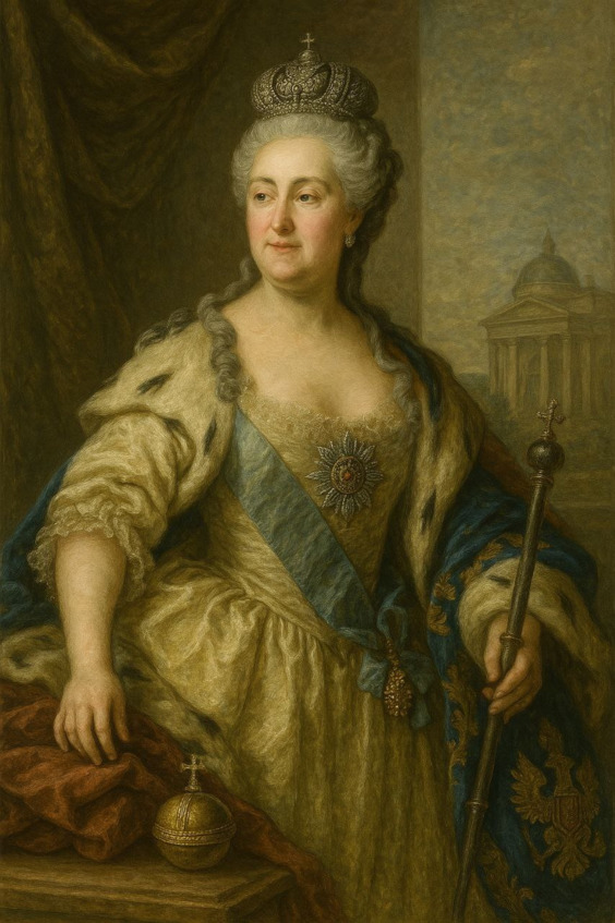 Софи Августа ФредерикаВ городе Штеттине жила.Довольно миленького лика,Часто игру с детьми вела.Очень подвижна, непоседа,И заводила средь детей.Всегда в игре после обеда,Мальчишки подчинялись ей.Вообще по маминому мненью —Как сорванец себя вела.Мать за такое поведенье,Дочку Фике просто звала.С утра прилежно изучалаТри иностранных языка.Французский хорошо уж знала,А итальянский лишь слегка.Английский выучить успела,Могла читать, переводить.Историю учить хотелаИ в танцах время проводить.Тут вдруг депеша* прибывает,Зовут принцессу под венец.Да, Ангальт-Цербстких всюду знают,Гордится у Фике отец.Кристиан ревностный служивый,Довольно строгий командир.Человек чести и не лживый,Пусть беден, зато чист мундир.Он без протекции и дружбыЛишь коммендантом пребывал.Но под конец военной службы,Прусским фельдмаршалом он стал.Пришло с России предложенье,В невесты дочку вдруг зовут.Пусть едут и без промедленья,Как не порадоваться тут.Но сам поехать он не может,На службе как никак стоит.Пусть мать дочурке и поможет,Путь очень дальний предстоит.«Жена и дочка собирайтесь,Доедите уж как нибудь.И там понравиться старайтесь,Фике взять платьев не забудь.Видать императрица знала,Про наше скудное житьё.В дорогу денег нам прислала,Иоганна собирай её»…2. Дорога в Россию и встреча с наследником