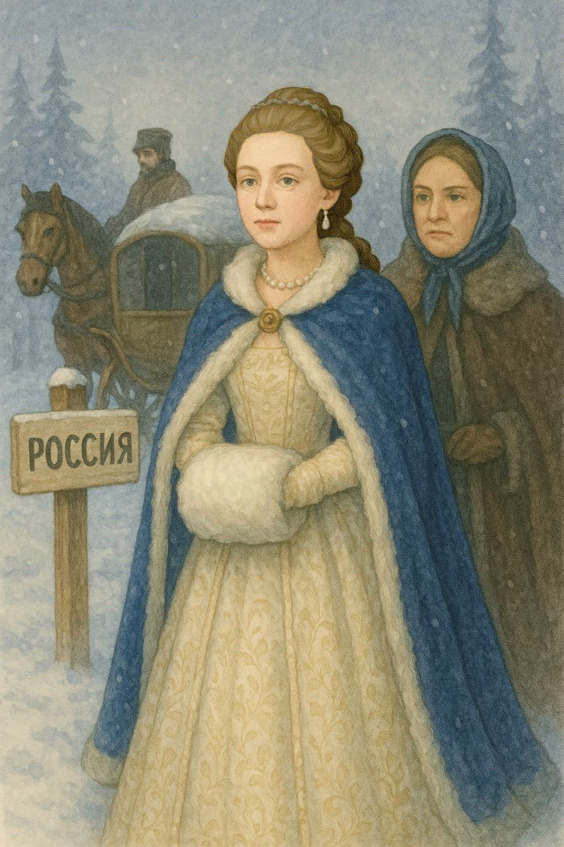 В дорогу быстренько собралисьИ выехали в дальний путь.Мать с дочкой Рейнбуш добиралисьИнкогнито и в этом суть.Чтобы другие не узнали,В пути препятствий не чинили.Когда им лошадей меняли,Чтоб слуги тайну сохранили.В домах почтовых плохо спится,Молитвы по ночам читают.Близка российская граница.Скоро их русские встречают.Настал январь. Морозным утромПодъехали к границе сани.Шел сильный снег, ветер притом,Продрогли дочка с мамой сами.