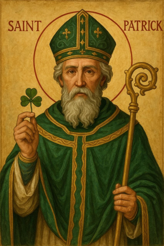 В Ирландии были сильны друиды,Они свою политику вели.На жизнь людей они имели виды,Их слушались все, даже короли.Патрик приехал к людям с христианством,Учение хотел распространять.Друиды поняли угрозу их пространству,Надо этого Патрика унять.Они настроили людей жестоких,Чтоб Патрика вернее погубить.Его схватить, среди поездок многих,Взять в кандалы и в яму посадить.Так и случилось, только люди тоже,Учение послушать захотят.И Патрик в кандалах сумел им все же,Свет заронить в сознанье тех ребят.За две недели, где он находился,Он достучался к каждому из них.И у тюремщиков переворот явился,Христос в их души черствые проник.Все кандалы они немедля снялиИ извинились за свои грехи.Просили их крестить Патрика стали,И оказались уж не так плохи.Весною Патрик в яме находился,С собою посох из земли не взял.Когда ж за посохом своим явился,То тот листвой зеленою сиял.И оказался новый посох чудом.Тюремщиков так посох поразил.Они затылки чешут: «Ну откуда,У палки ясеня есть столько сил?»А Патрик взял лист клевера и скажет:«Вот на примере этого листка,Бог есть везде и вам листок покажет,Бог есть в трёх лицах, суть его близка.Всем управляет Божеская сила,Есть Бог Отец, Бог Сын и Святой Дух.Скажу, где бы судьба вас не носила,К вам никогда не будет Христос глух.Вам к святой вере надо приобщаться,Поверить в Бога, род людской любить.И добрым человеком оставаться,Тогда всю жизнь, ты сможешь с Богом быть.»Засилье от друидов вытесняяВ сознании у взрослых и детей,Чтобы они все больше узнавая,Тогда стремились в церковь поскорей.8. Миссионерская деятельность Патрика