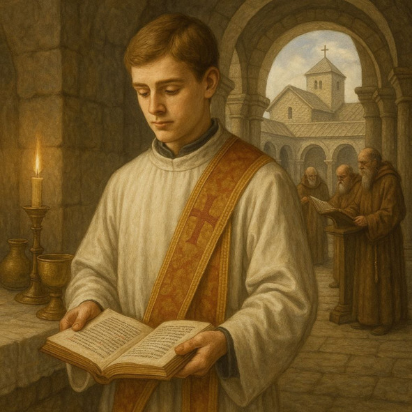 Патрик старался выполнять заданья,Тем более, когда душа поет.Все делал без боязни наказанья,А все даже совсем наоборот.Его усердие тут сразу оценили,Как он в обители молился и творил.Епископу о парне доложили,Сам настоятель лестно говорил.Герман Осерский был такой епископ,Он в монастырь заехал не спроста.Тем более, что ехать то не близко,Дал Патрику сан дьякона тогда.
