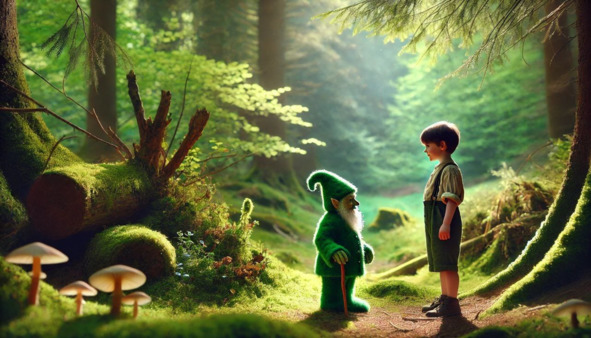 Лес, густой дремучий лес.Мальчик Ваня в чащу влез,Там грибочки собирал.И намаялся, устал.Стал искать назад путиНо не может он найти.Зря искал назад дороги,В толстом мху увязли ноги.Стал сквозь чащу выбиратьсяИ на сучья натыкаться.Надо ж выбраться из чащи.Кто в кустах глаза таращит?Может хищный зверь какой,В густой шубе меховой.Острые клыки и когтиСхватит вдруг его за локти.И на части раздерет.Кто же зверя разберёт.Вон башка его большая,Видно страшная такая.Как оскалился упырь,Сейчас суну в морду штырь.Палку наш герой находитИ поближе всё подходит.Как ударит по макушке.Это пень. Глаза – гнилушки.Слава богу. Будем жить.Рано Ванечке тужить.Коль испуг уже прошел.Дальше Ваня наш пошел.Но дороги не найдет.Кругом лесовик ведёт.Видит, был уже он здесь.Да и хочется поесть.Воду выпил всю ужеЕсть вода только в луже.Но не станет её пить,Чтобы зверем не завыть.Стать вдруг волком иль лисойИли бегать как косой.Этого Ваня не хочет.Кто же голову морочит?Может все же Лесовик,Он морочить всех привык.Поневоле вспомнил он,Дал Лесовику поклон.Стал он жалобно просить,Головы же не сносить.«Выведи меня домой,Лесовик мой дорогой.»Тут кряхтение раздалосьИ над кочкой показалось.Что – то странное такое,Человека меньше втрое.Бородатый старичок,Зелен весь Лесовичок.