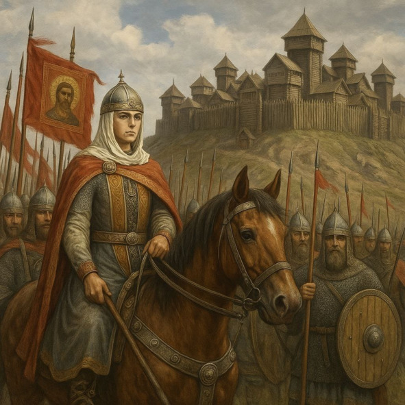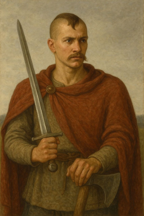 Все детство Святослав проводитС Бойцами из своей охраны.Часами он с коня не сходит.Встает с восходом утром рано.Его ребята тренируют,Чтоб вышел из него боец.С мечами на конях гарцуют,Вот радовался бы отец.В походы малые он ходит,В лодке орудует веслом.Для князя вовсе не подходитСпать на земле с одним седлом.Он внешне, как обычный воин,Одежда белая лишь чище.Всегда он выдержан, спокоенИ ест одну простую пищу.