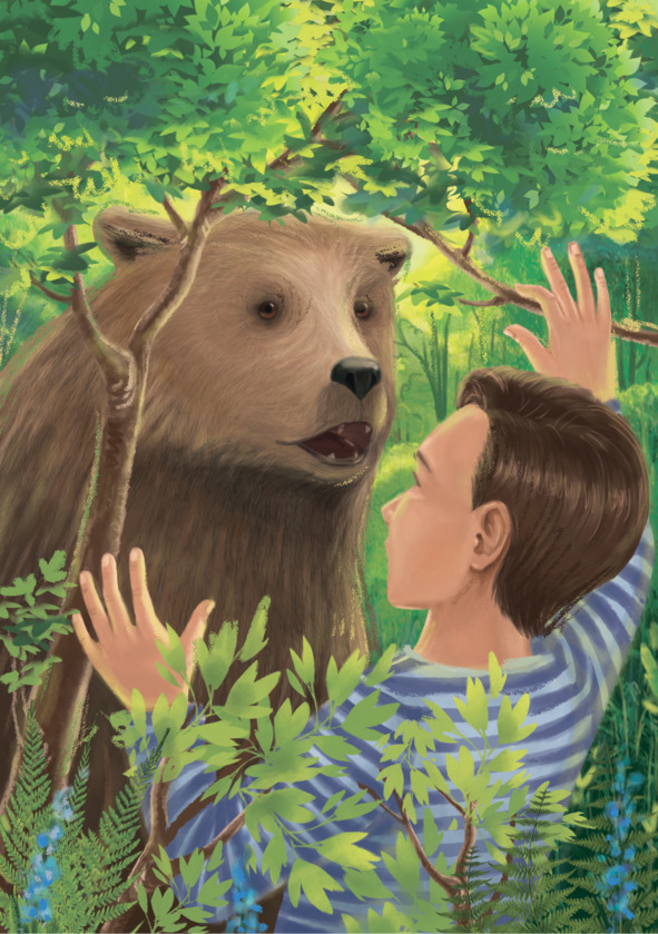 – Ме-е, – снова выдавил Тимоха и ткнул пальцем в лес. Ме-едведь!