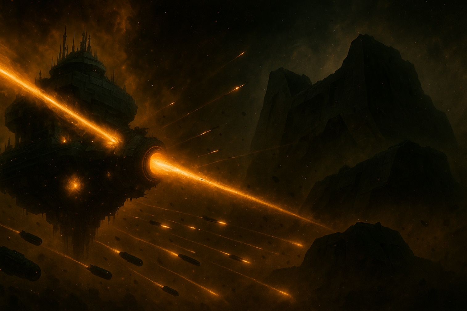 Станция Создателей содрогалась, словно живое существо, атакованное невидимым хищником. Её могучие орудия извергали в черноту космоса сконцентрированные лучи плазмы, раскалённые до температур звездного ядра, а также самонаводящиеся ракеты с боеголовками, способными испарить целый город. Всё это смертоносное великолепие устремлялось к мрачному силуэту древней крепости Ту’мов, чьи угловатые очертания напоминали скорее гробницу, чем военное сооружение.