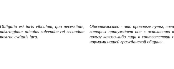 «Обязательством называется субъективная юридическая ситуация, основанная на личной связи между конкретными участниками гражданского оборота (сторонами), которая состоит в формальной возможности для одного из них (кредитора) требовать от другого (должника) определенного поведения (предоставления) в свою пользу. Притязанию кредитора соответствует обязанность должника, которая представляет собой, однако, подчинение не кредитору как отдельному лицу, а праву в целом как общепризнанной системе норм поведения. Воля должника, связанная обязанностью подчиниться кредитору, свободна в том смысле, что признанием пользуется только нормативное притязание кредитора и от должника в принципе нельзя потребовать большего, чем соответствия общему стандарту поведения, установленному для случаев данного типа.