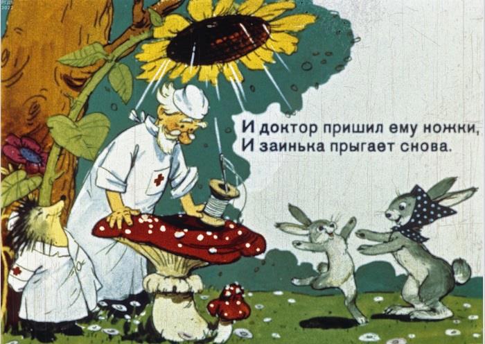 Он же озвучивал доктора и в продолжении – мультипликационном фильме того же дуэта "Бармалей" (1941 г.).
