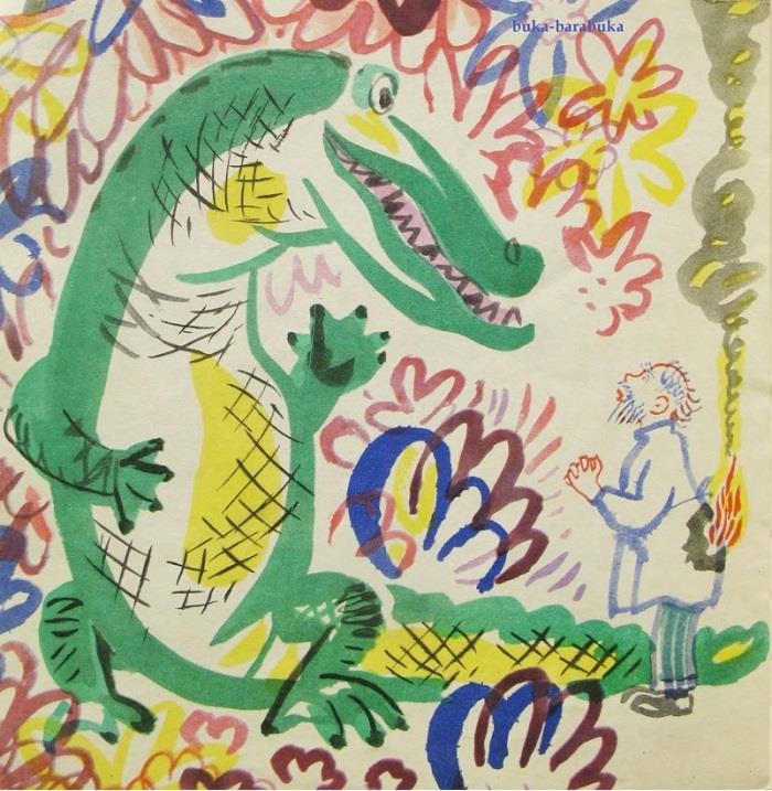 – Нет, – уверенно оказал Добужинский. – Это был разбойник. Знаменитый пират. Вот напишите-ка о нем сказку. Он был вот такой. В треуголке, с такими усищами. – И, вынув из кармана альбомчик, Добужинский нарисовал Бармалея. Вернувшись домой, я сочинил сказку об этом разбойнике, а Добужинский украсил ее прелестными своими рисунками».