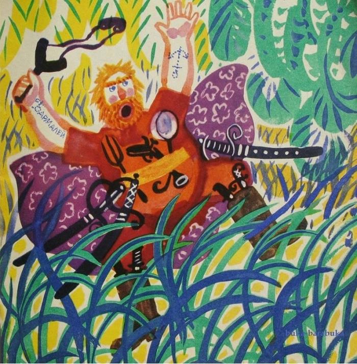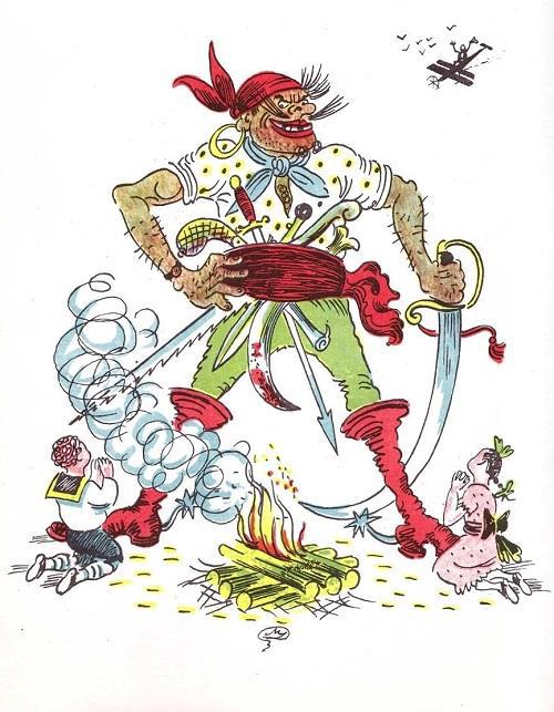 Эти две ипостаси – дикарь и пират – и будут основными амплуа Бармалея. Поэтому всех иллюстраторов можно разделить на две партии – "дикаристы" и "флибустьеристы".