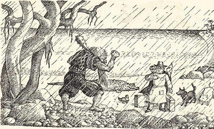 В первом прозаическом переводе, как мы помним, никакого Бармалея не было, а вот во втором издании 1936 года он выглядел обычным дикарем.