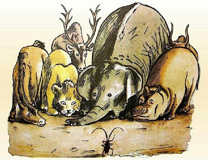 Мы успокаиваем их и стараемся убедить, что тут нет еще ничего опасного, что это всего-навсего таракан, которого не следует бояться. Куда там! Они продолжают вопить своё: "Как так таракан? Это не таракан, а тысяча разъяренных зверей! Это не таракан, а пропасть, гибель Советской власти"…