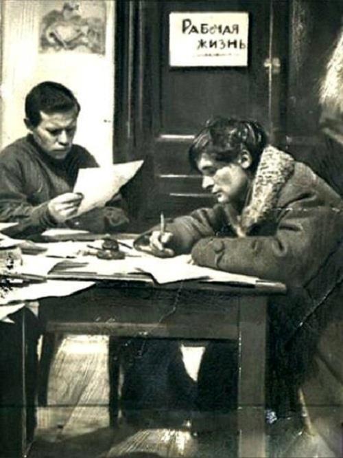 Жили весело, как живут все двадцатилетние. Много писали, еще больше пили. Вот наш герой в редакции газеты "Гудок". Зацените офисный кэжуал.