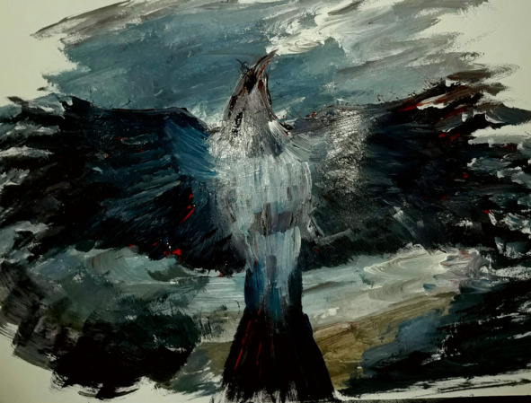 Лежит старушка на кроватиС табличкой « Я не умерла».А в небе высоко кружится воронРасправив крылья, в воздухе паря.Обычно, глаз его, наметан на добычу,Но что-то новое сквозит сегодня в нем.Он сам не свой, рассеян, непривычен,И запах крови не тревожит нипочем.Влекут его красоты поднебесья.Взгляд будоражит широты размах.Мир необъятный, был когда-то тесен.Но, а теперь, что происходит?Что не так?Сознание, вытесняет новое сознание.И в душу заползает господин другой.И силы на исходе.Напряги внимание!Мы падаем на землю с высоты такой!Падение смягчил ковер травы густой.И искра жизниЕще тлеет в теле бедной птицы.Скорей! Спешим разъединиться!Мы увлеклись чрезмерно этою игрой.Старушка открывает медленно глаза.Зрачок меняет форму постепенно.И на ресницах, нервная, дрожит слеза.Слеза утраты обретенного спасения.