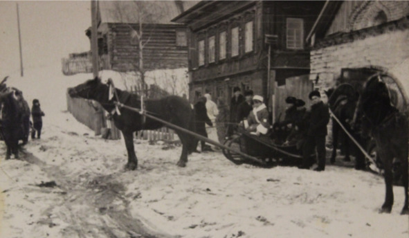 На фото здание стационара больницы. Позднее в нем был детский сад. Запечатлен праздник «проводы зимы». Семидесятые годы XX века.