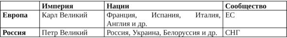 Сравнение политической динамики Европы и России позволяет выделить следующее важное отличие: если в Европе доминируют процессы объединения, в России – процессы распада. После распада Российской Империи, основу которой заложил еще Петр I, идет перманентный процесс обособления окраин – процесс становления новых национальных государств. Советский Союз был во многом переходной формой, которая имела черты как бывшей империи, так и признаки новых национальных государств. Именно во времена СССР национальный принцип государственного строительства был впервые применен в полной мере.