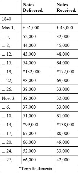 It will be seen from the above table how rapidly the system of bank exchange absorbs the over-issue, and how instantaneously the paper drawn from one bank finds its way into the hands of another.