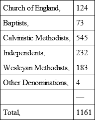 Out of these daily schools for the poor, not less than 269, or 46½ per cent of the whole number, (to say nothing of many of the private schools,) are publicly provided by the Church; and it should be remembered that of the Dissenting Sunday schools nearly all are held in their meeting-houses, and form part and parcel of their religious system; whereas the Church Sunday school is mostly an institution apart from the church itself, and established on its own separate footing.