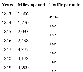"The subjoined table exhibits the number of miles opened at Michaelmas in seven consecutive years, and the average traffic per mile during the first nine months in each year: —